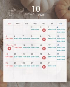 25年10月営業時間のお知らせ