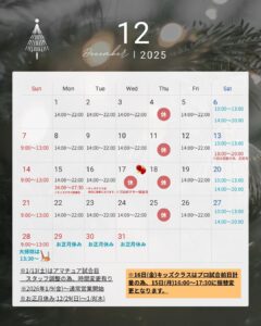 25年12月営業時間のお知らせ
